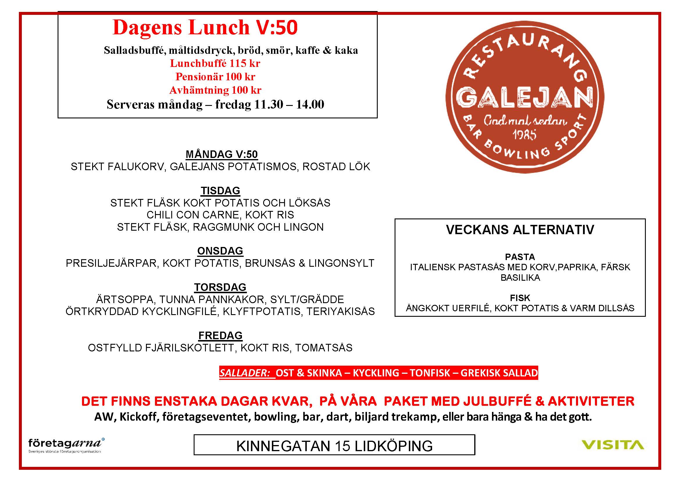 Perioden 24/11-17/12 serverar vi endast julbuffé